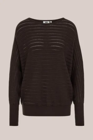 WE Fashion – Dames trui met opengewerkte structuur – Regular fit – Donkerbruin – Biologisch katoen –