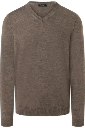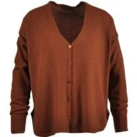 River Woods V-neck Cardi Rounded Bottom Ls Brown