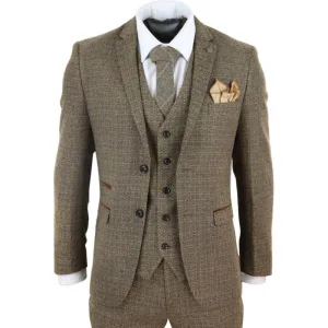 Heren 3-delig Bruin Tweed Ruit Vintage Retro Pak