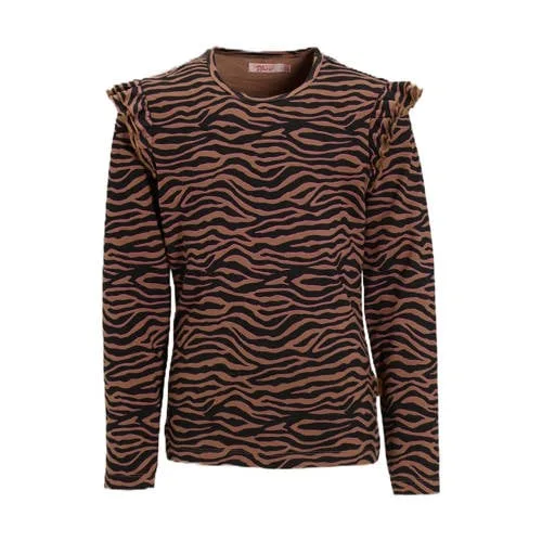 Orange Stars longsleeve met ruches Razi bruin