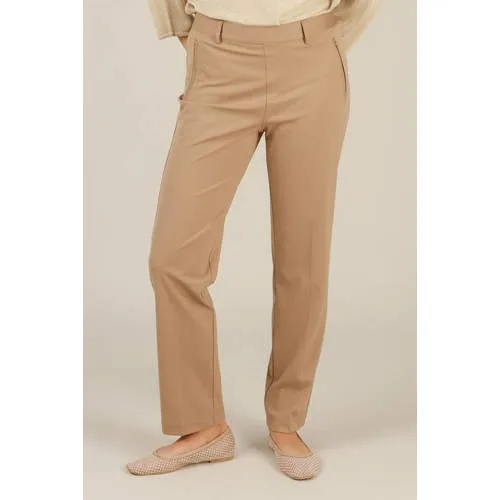 Yest travelstof pantalon lichtbruin