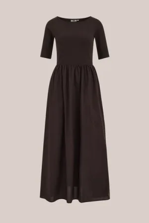 WE Fashion – Dames Maxi jurk met structuur – Donkerbruin – Katoen –