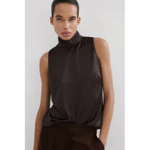 WE Fashion – Dames T-shirt met V-hals – Curve – Regular fit – Donkerbruin – Viscose – Plus Size