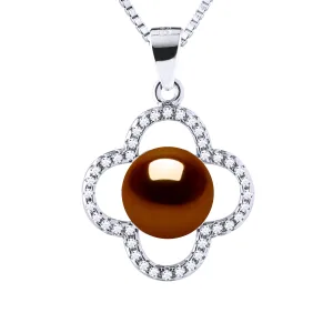 Clover Ketting Zoetwaterparel 9-10 mm Chocolate 925