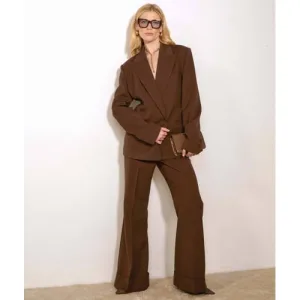 Mango imitatieleren regular waist flared broek donkerbruin