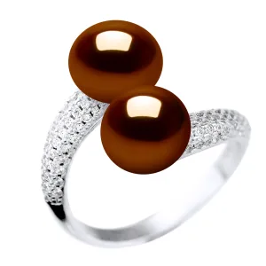 Ring YOU AND ME 2 Parels van het water Zoete Chocolade Jewelry 9-10 mm 925