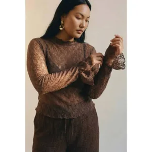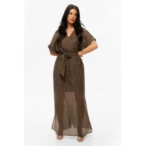 WE Fashion – Dames midi jurk van linnenmix – Regular fit – Donkerbruin – Livaeco™ Viscose –