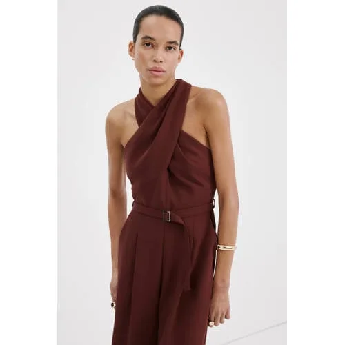 WE Fashion – Dames gebreide polo met opengewerkte structuur – Regular fit – Lichtbruin – Biologisch katoen –