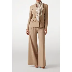 Oltre Suede-effect Caban Coat With Brooch Beige