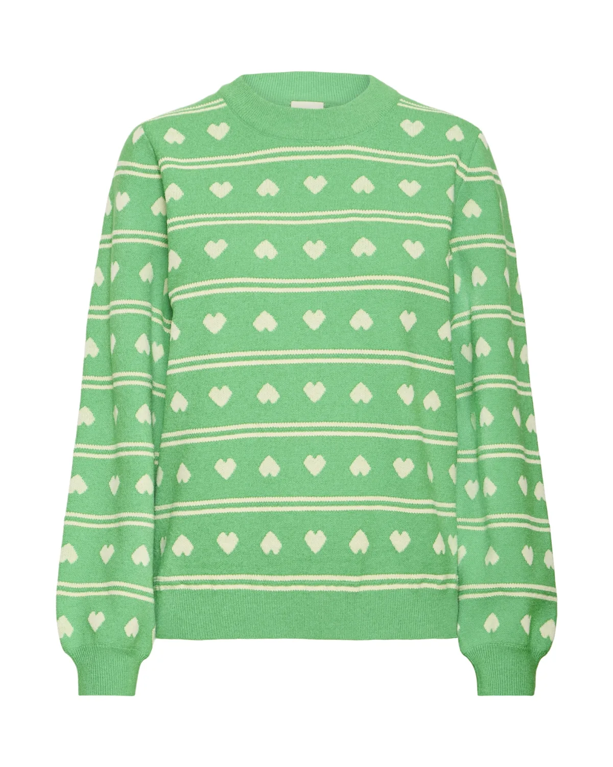 ICHI Trui ‘IHBrielle’ crème / grasgroen