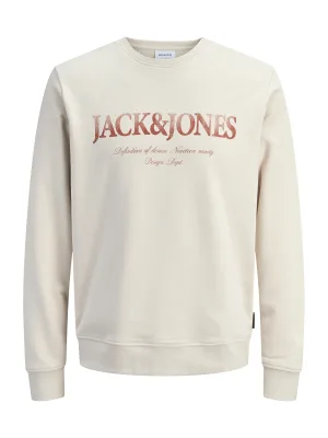 JACK & JONES Sweatshirt ‘JJDEVIN DAYTONA’ crème / roestbruin