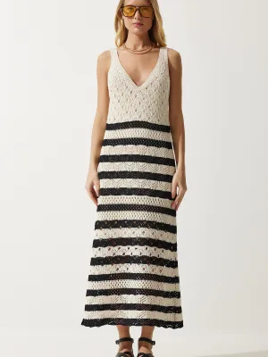 MANGO Gebreide jurk ‘JANE’ crème / zwart