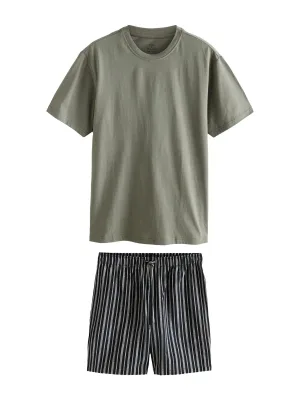 Next Pyjama kort donkerblauw / olijfgroen / wit