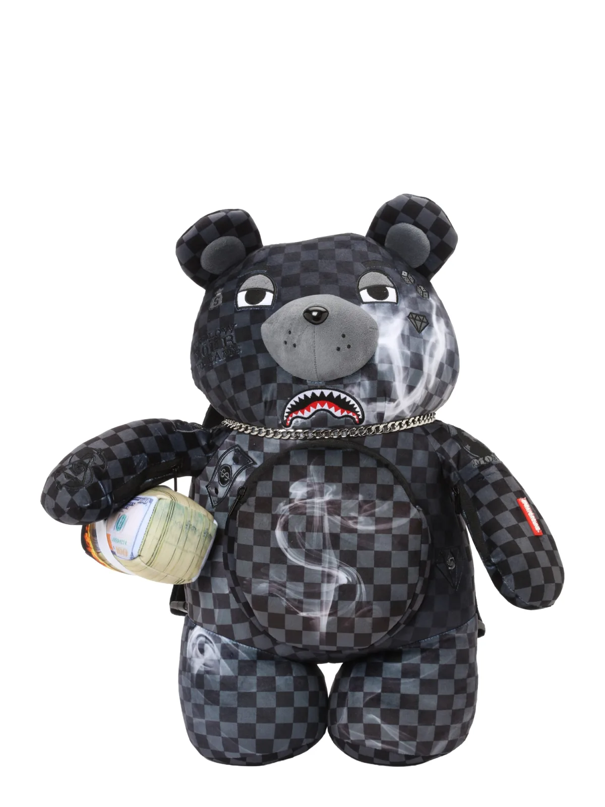 Sprayground Rugzak ‘DRIPPING SHARKS IN PARIS MONEYBEAR TEDDY’ donkergrijs / rood / zwart / wit