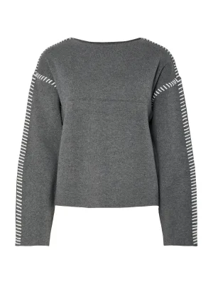 YAS Trui ‘YASSTITCHA’ ecru / grijs gemêleerd