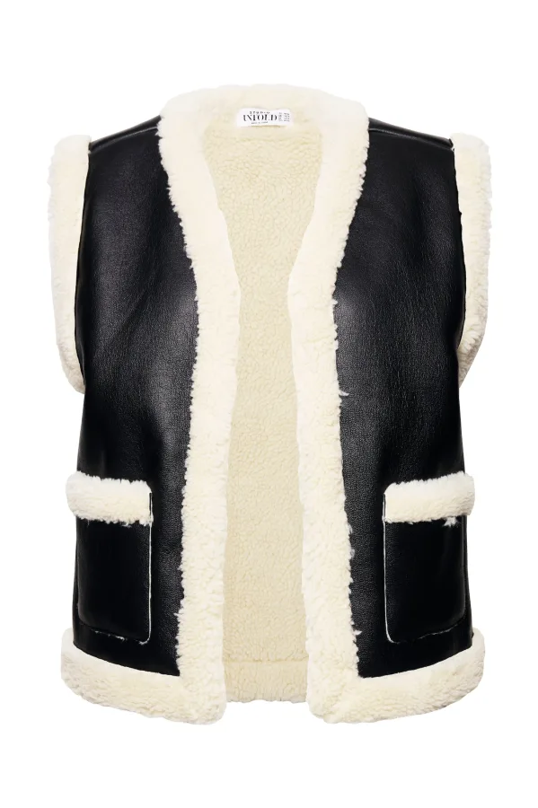 VERO MODA Gebreid vest ‘VMCALLA’ ecru / zwart