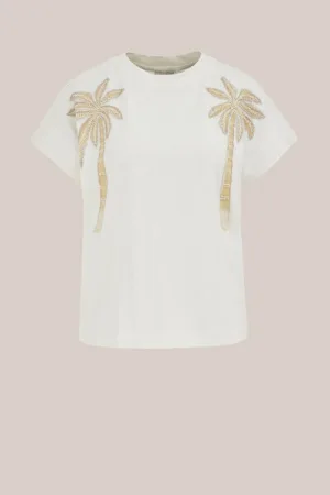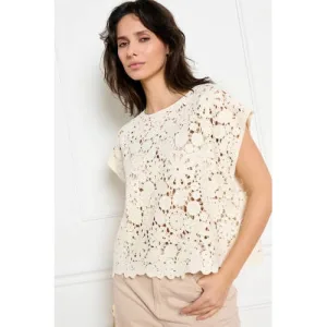 Losvallende Ecru Top met Zwart Kantdetail