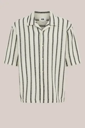 WE Fashion – Heren relaxed fit overhemd met structuur – Relaxed Fit – Gebroken wit – Katoen –