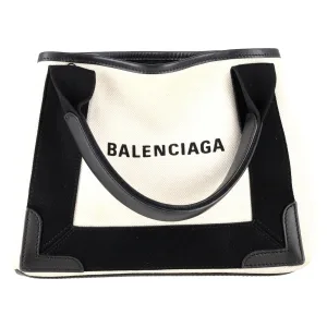 Balenciaga Navy XS Cabas Tote in wit canvas en leer