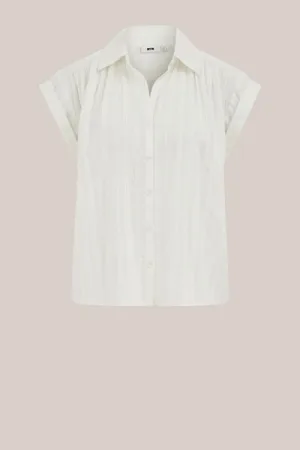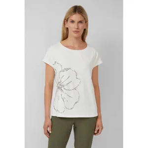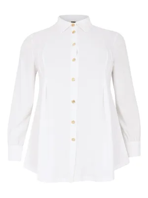 Witte bloemenviscoseblouse met uitgesneden kraag