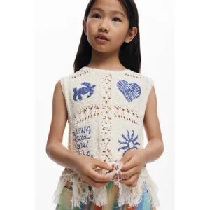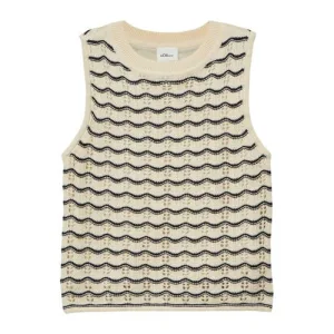 s.Oliver gestreepte mouwloze top ecru fijn gebreid