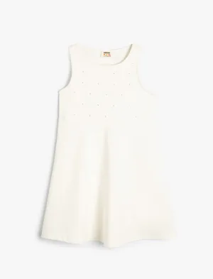 Lange, nauwsluitende gebreide jurk met verticale lijnen