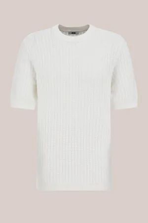 WE Fashion – Heren regular fit fijngebreid T-shirt – Regular fit – Gebroken wit – Katoen –