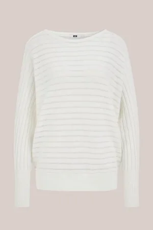 WE Fashion – Dames trui met opengewerkte structuur – Regular fit – Gebroken wit – Biologisch katoen –