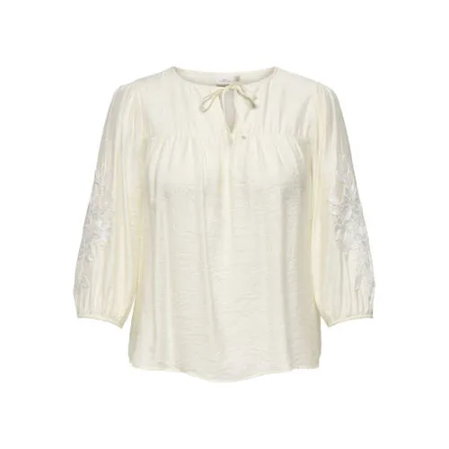 Crème V Hals Top met Metallic Motief