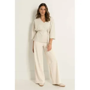 AMAYA Amsterdam wide leg regular waist broek ecru