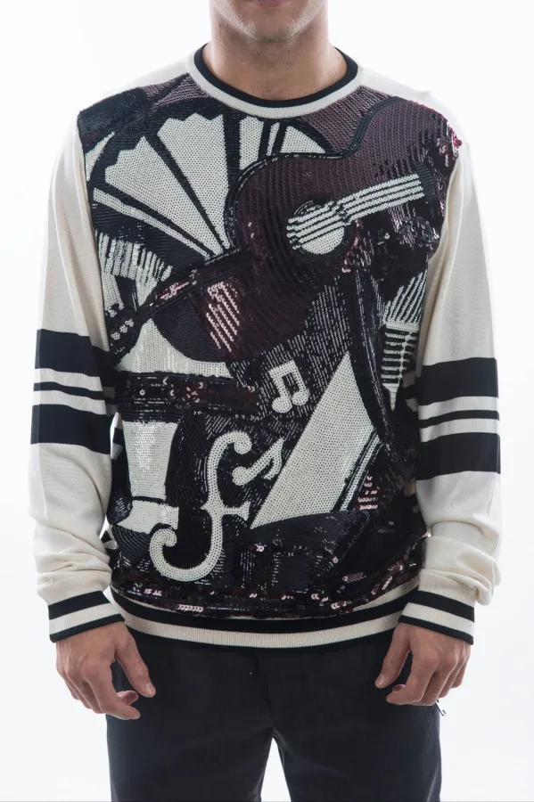 Dolce & Gabbana Heren Trui met witte Jazz Gitaar met Pailletten