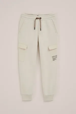 WE Fashion – Jongens regular fit joggingbroek met cargozakken – Regular fit – Ecru – Katoen –