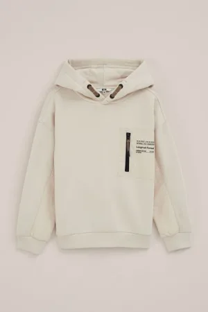 WE Fashion – Jongens hoodie met print – Relaxed Fit – Ecru – Katoen –