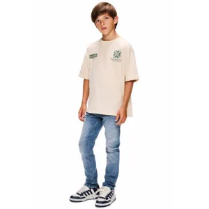 WE Fashion – Jongens T-shirt met print – Regular fit – Gebroken wit – Katoen –