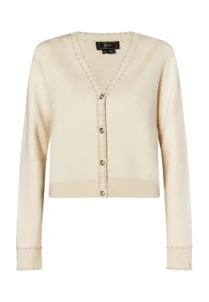 Faina Vest met parels Dames wolwit