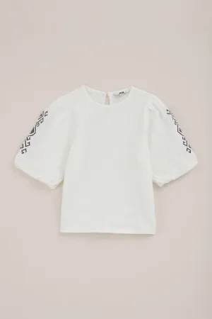 WE Fashion – Meisjes seersucker blouse met embroideries – Regular fit – Gebroken wit – Katoen –