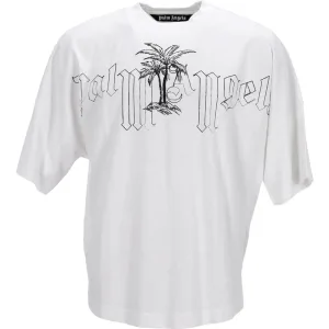 Oversized T-shirt met Palm Angels-logo in wit katoen