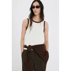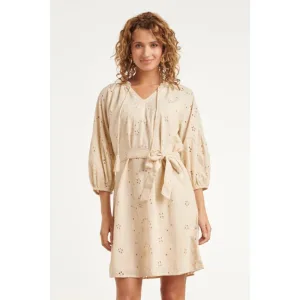 Smashed Lemon Beige jurk met broderie en strikceintuur |