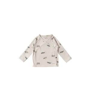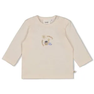 Noppies baby gestreepte longsleeve ecru/grijs fijn gebreid
