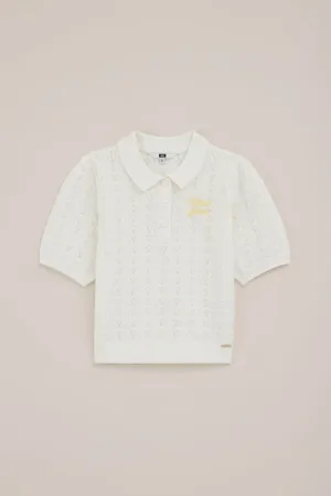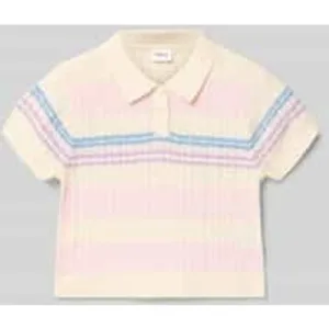 WE Fashion – Meisjes gebreide polo met open structuur – Regular fit – Gebroken wit – Katoen –
