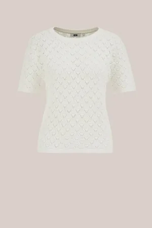 WE Fashion – Dames trui met open structuur – Regular fit – Gebroken wit – Biologisch katoen –