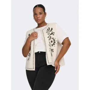 ONLY CARMAKOMA teddy gebloemde gilet ecru