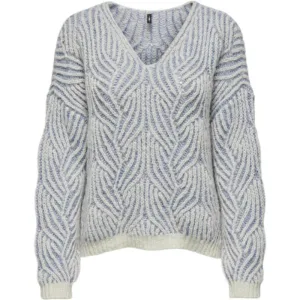 Only Onlelin life ls v-neck cc knt ecru dessin