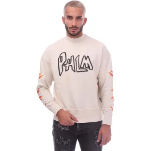 Heren Palm Angels Garment Dye Graffiti Flames Crewneck Sweatshirt in Off White
