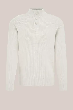 Van Gils – Heren trui met rits – Gebroken wit – Merino wol –