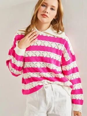 Abercrombie & Fitch Gebreid vest fuchsia / wit