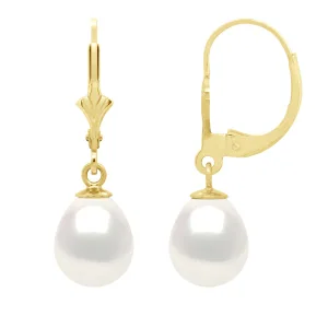 Oorbellen in Geel Goud 375 en Echte Gecultiveerde Zoetwaterparels Paar 8-9 mm