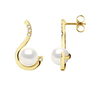 Oorbellen Prestige – Diamanten 0,08 Cts – Kwaliteit HSI – Wit Goud – Echte Gecultiveerde Zoetwaterparels Rond 7-8 mm