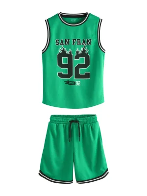 Urban Classics Pet ‘Letter’ grasgroen / zwart / wit