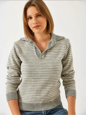 GARCIA Trui grijs gemêleerd / wit
